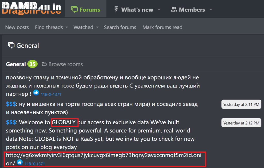 ダークウェブのRamp4uフォーラムで「$$$」という脅威アクターが2025年6月26日に「GLOBAL RaaS」がリリースされたという宣伝をしていた模様です。このことから、「$$$」と「Global Group」は何らかの関係があるのでは無いかと推測されています。