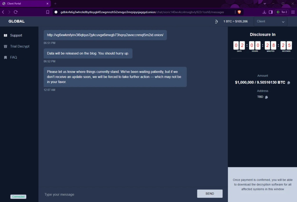 またElectricIQの調査よると、Global Groupに関係があると思われる脅威アクター「$$$$」が使用していたQTox IDがBlack Lock Ransomwareのプロファイルにリンクされていることを発見したそうです。さらに2025年6月6日に「$$$」がqTOXの表示名を「Black Lock」から「Global Black Lock」に変更したことも観察されています。このことから、Global GroupがBlack Lockのリブランド(改名)の可能性は高いと推察されています。