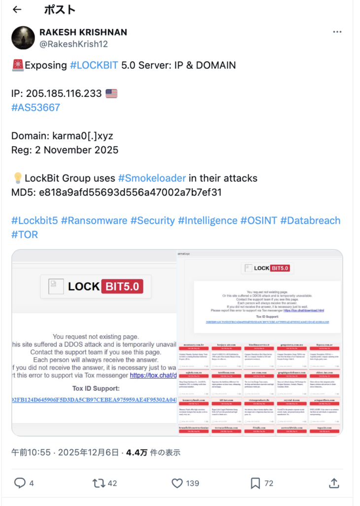 LockBit 5.0のインフラに関する調査結果の公開(2025年12月)