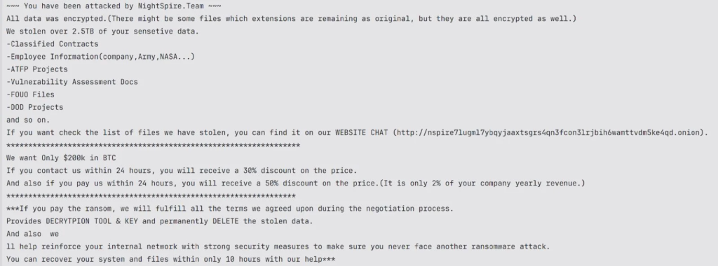 - Halcyon: Emerging Threat Actor: NightSpire Ransomware