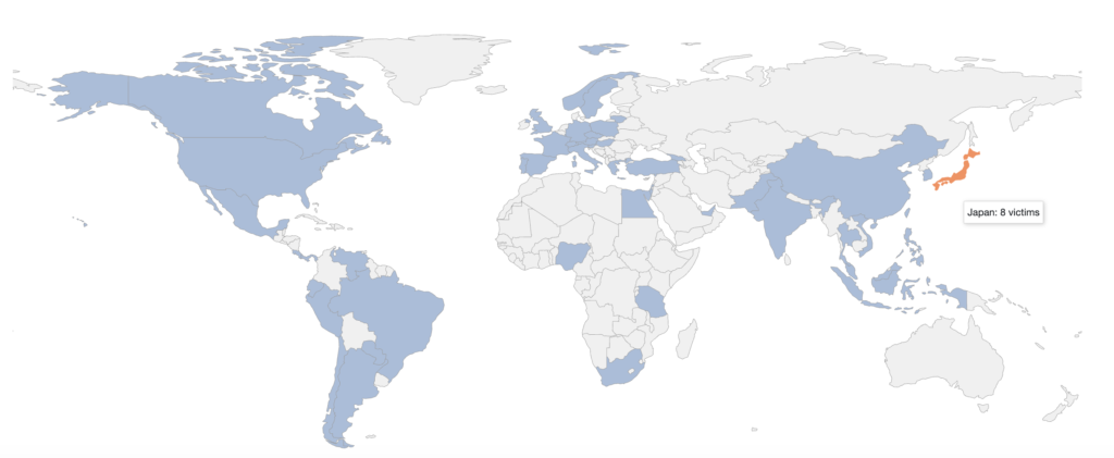 NightSpireの攻撃対象は様々な分野にわたっています。国別でも特に偏らずに様々な国の企業を標的にしています。